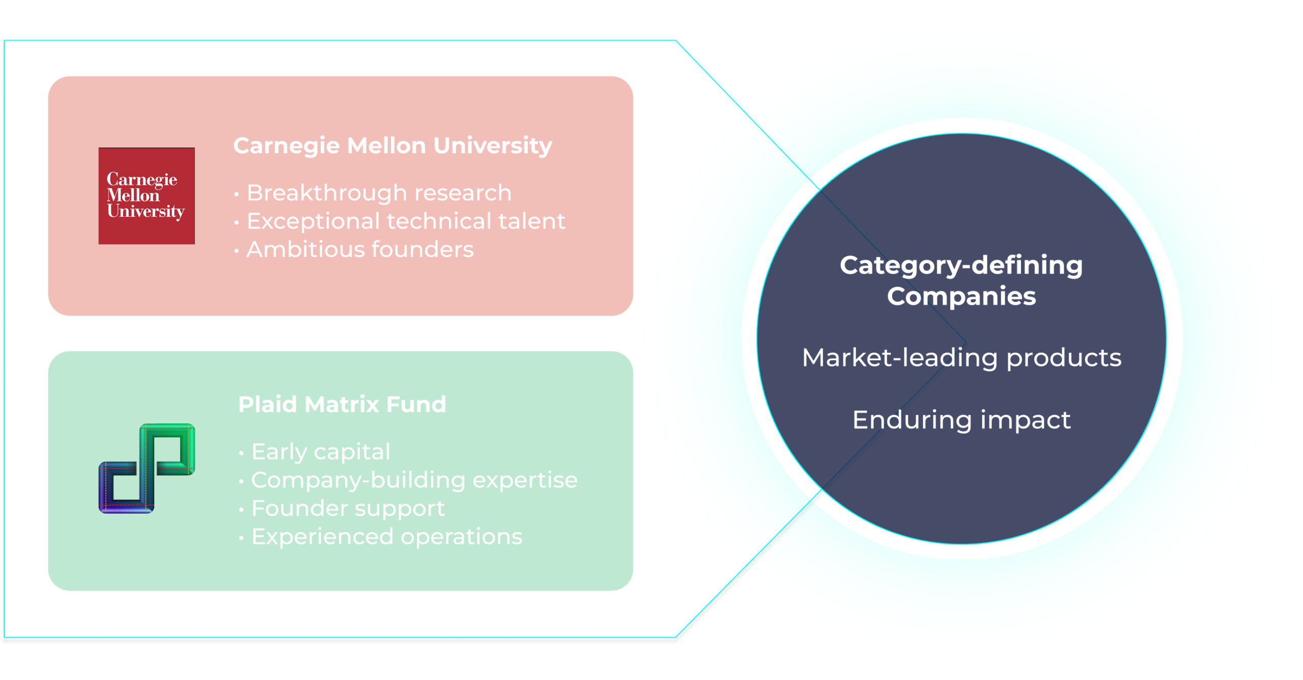 Plaid Matrix Fund partners with exceptional Carnegie Mellon founders at the earliest stages of company formation. We support founders with aligned capital, experienced guidance, and access to the broader venture ecosystemâso technically ambitious ideas can grow into durable, category-defining companies.